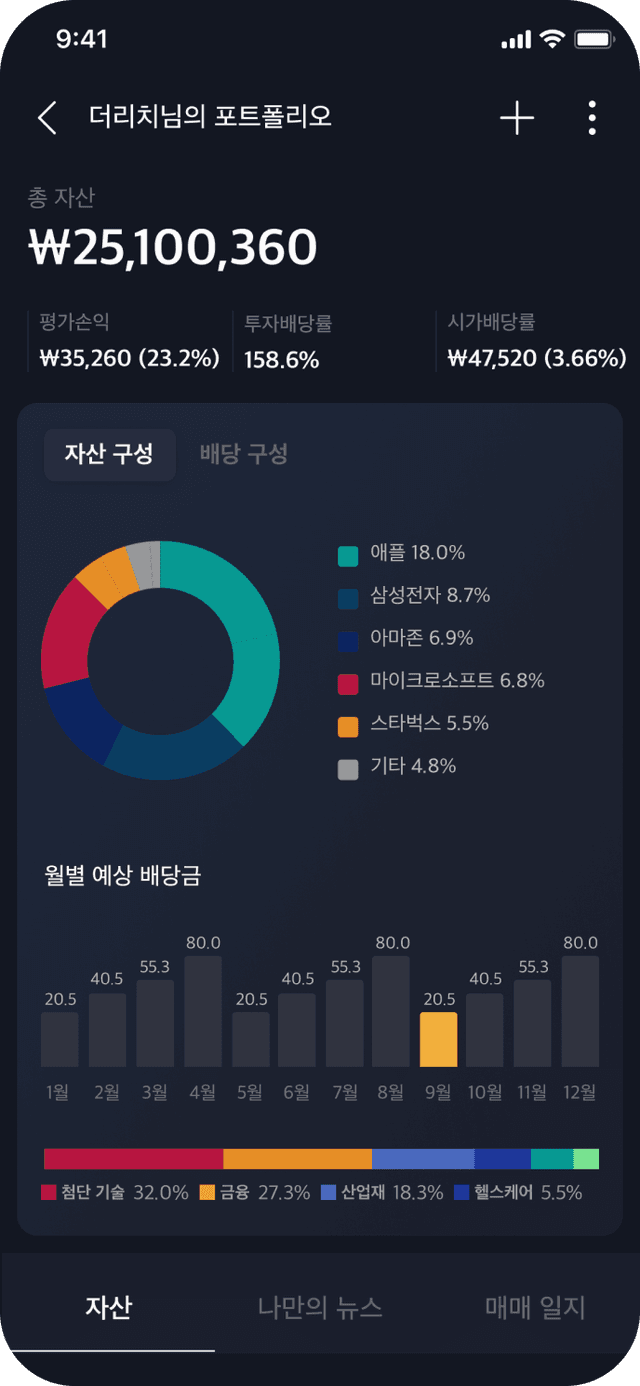 매 달 받게될 예상 배당금과 내 자산 분석까지 한 번에!
