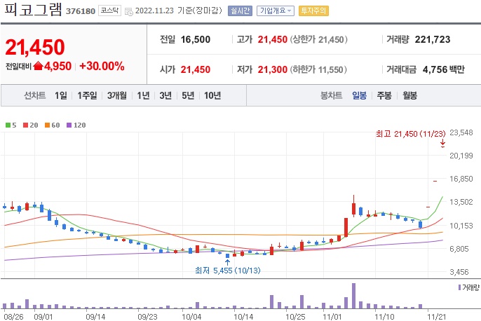 https://contents.premium.naver.com/padakkr/padak/contents/221121184620818ti22.11.23 급등주 분석, 무상증자 권리락 효과에 피코그램 3연상 기록