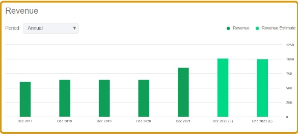 현재 조선주에는 충분히 비중을 실어놓은 상태이기 때문에 다음 투자 섹터를 찾고 있다. 조선주 투자가 끝나면 미련 없이 한국 장을 떠나리라... (최근 불거진 금투세 논란과 현대중공업의 중복 상장, 그리고 지금 글을 쓰고 있는 오늘 보유하고 있던 OCI의 인적분할 소식으로 또 -5% 하락... 한국 시장에 공부해서 크게 투자한 두 종목 모두 분할을 했고 나의 수익률은 고통받고 있다.) 이 종목은 예전부터 눈여겨보고 있었는데 70달러 선에 매수하고 싶었지만 그땐 다른 종목에 물려있어서(읍읍...) 매수하지 못했다. 그러나 기회는 다시 찾아오는 법. 최근 신고가를 향해 가고있지만 언젠가 조정이 온다면 80달러선에서부터 천천히 매집할 생각이다. 아름다운 우상향을 보여주고 있으며 현재 가격 기준 PER 13.3배..