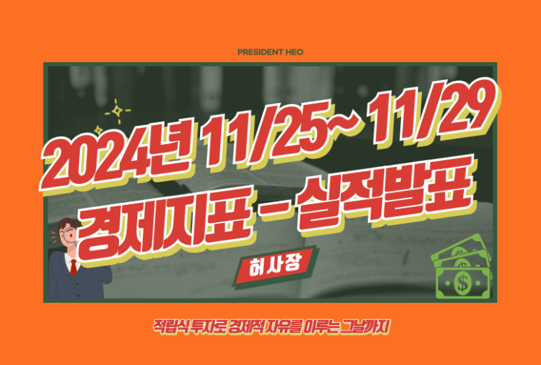 안녕하세요 허사장입니다. 이번주 주요 경제일정을 알려드리겠습니다. 11월 25일(월) 10월 시카고 연방 국...
